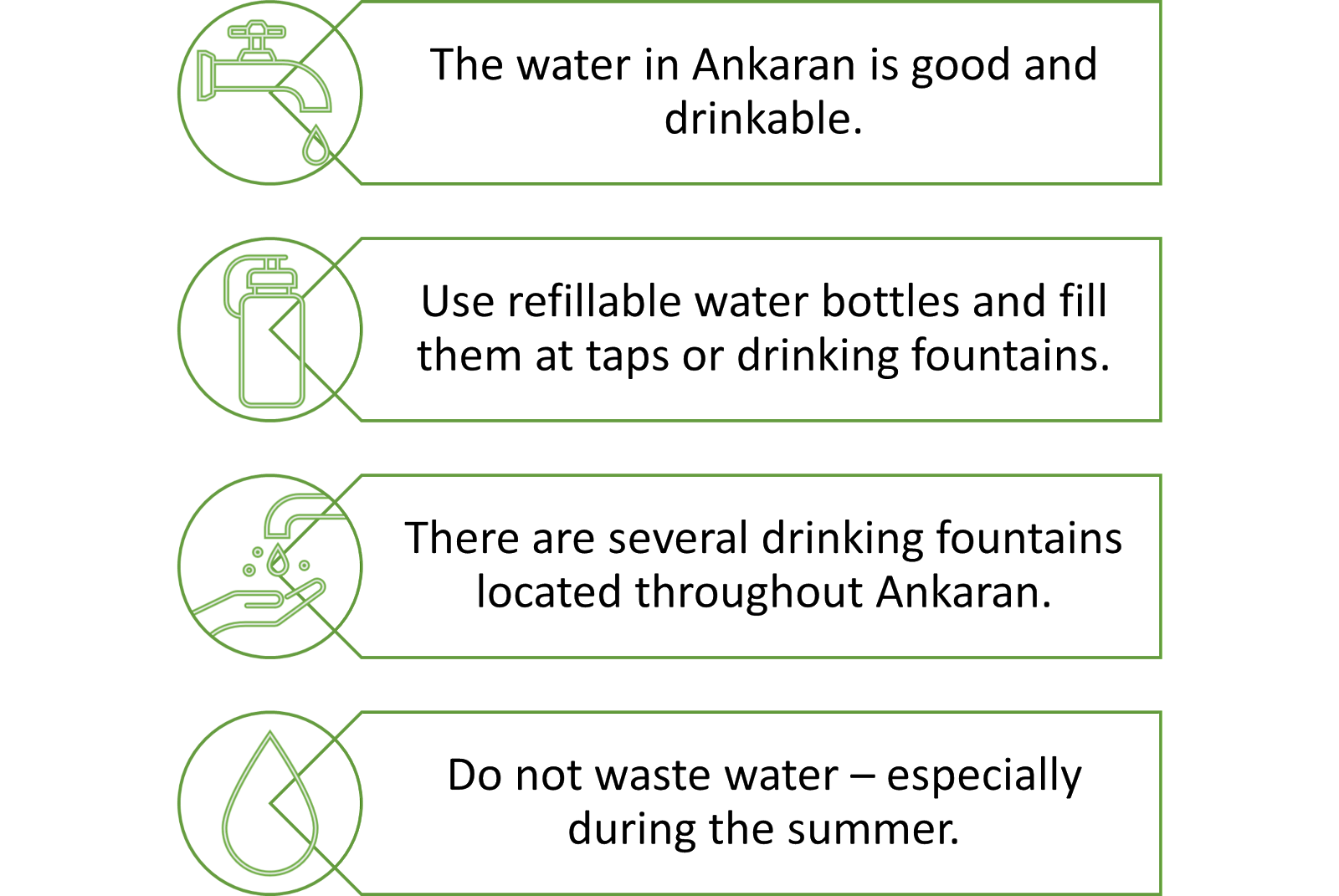 The water from the Rižana water supply is some of the best, and drinking tap water is much better for the environment. In Ankaran, we have drinking fountains at several locations where you can fill up your water bottle and refresh yourself. This will save you money and protect our environment by reducing the amount of bottled water being bought and creating unnecessary packaging waste. We invite you to refresh yourself with our Rižana water and help make the environment a better place.