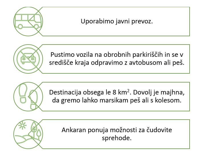 Preverite torej možnosti za trajnostno naravnane povezave in si izberite način, kako boste raziskovali naš polotok. Vabimo vas, da razdalje premagujete na okolju prijazen način in da se raje kot z avtomobilom v središče kraja od enega od obrobnih parkirišč odpravite z avtobusom ali pridete peš. Tako boste prispevali k varovanju okolja, zmanjšanju izpustov, zaradi česar se bomo vsi počutili bolje, raziskovanje destinacije pa bo še bolj zanimivo.