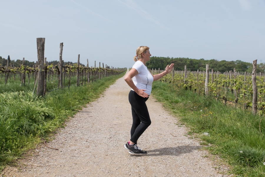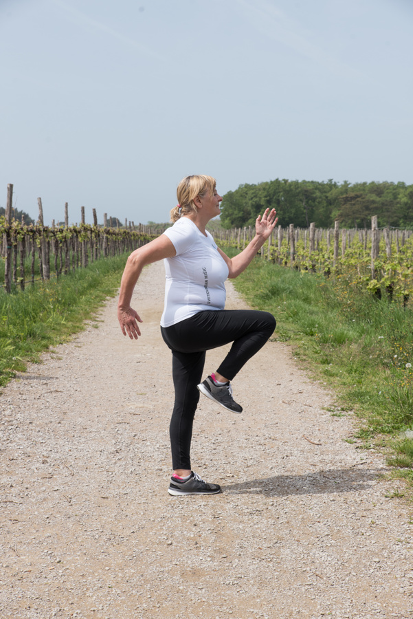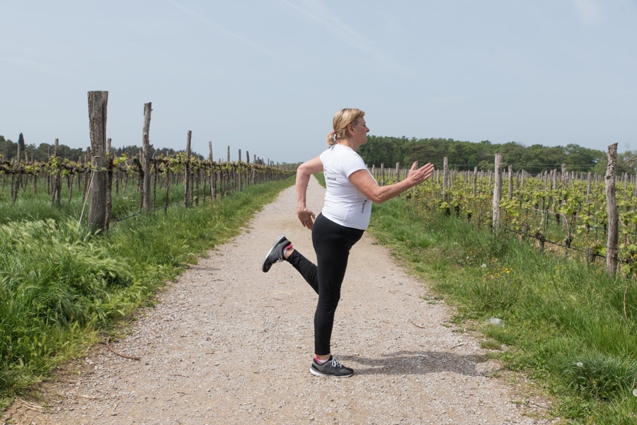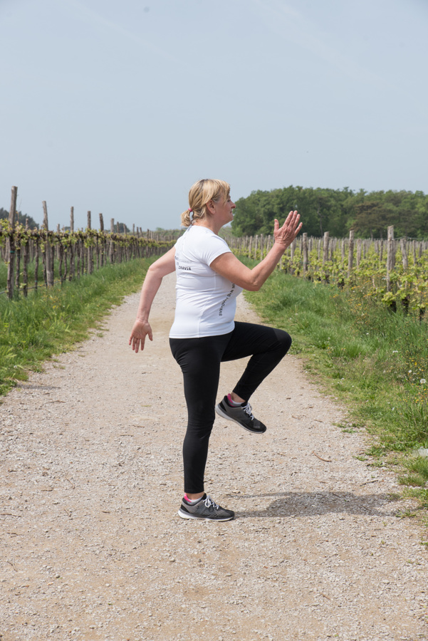 Stoje izmenično dvigujemo kolena do pravega kota. Vajo izvajamo v dveh ali treh serijah po 30 sekund.